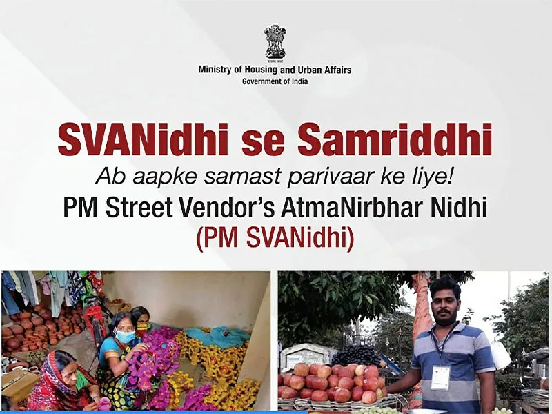 आवास और शहरी मामलों के मंत्रालय (MoHUA) के द्वारा भारत के 14 राज्यों और केंद्र शासित प्रदेशों के अतिरिक्त 126 शहरों में ‘स्वनिधि से समृद्धि’ कार्यक्रम की शुरुआत की गई है। 2020-21 में COVID-19 महामारी से संबंधित चुनौतियों के बाद भी, यह कार्यक्रम देश भर में लाखों रेहड़ी-पटरी वालों और उनके परिवारों को सामाजिक सुरक्षा लाभ प्रदान करने में सफल रहा।