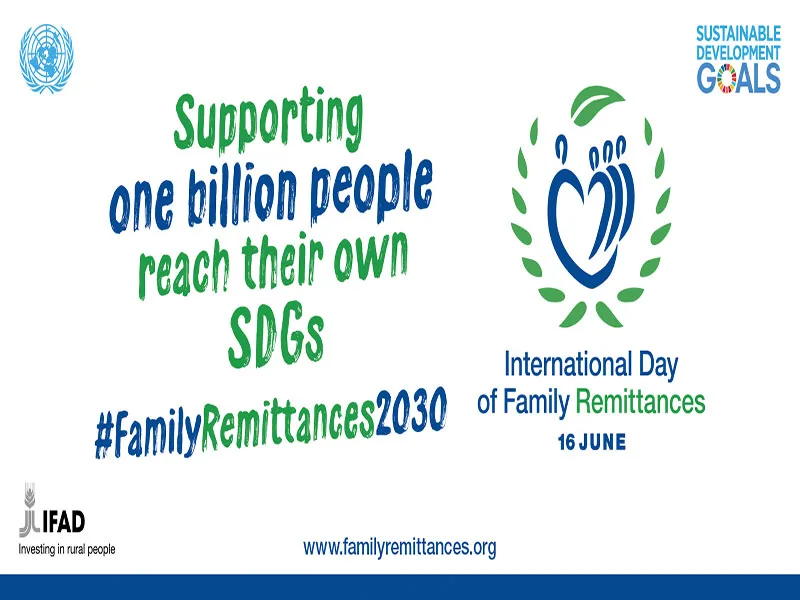 संयुक्त राष्ट्र महासभा द्वारा 16 जून को अंतर्राष्ट्रीय पारिवारिक प्रेषण दिवस विदेशों में रहने वाले प्रवासियों के प्रयासों को सम्मानित करने और अपने देश में अपने परिवार के सदस्यों के जीवन को बेहतर बनाने में मदद करने के लिए मनाया जाता है।