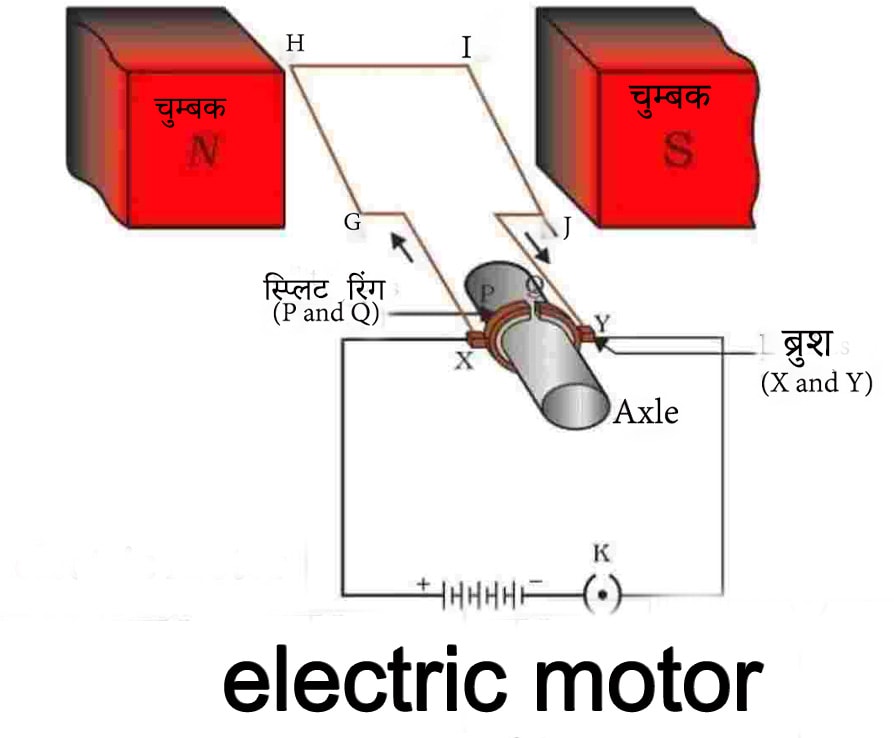 दो कार्बन ब्रुश X और Y है जो विभक्त वलय के बाहरी चालक सिरों P और Q के संपर्क में रहते है
