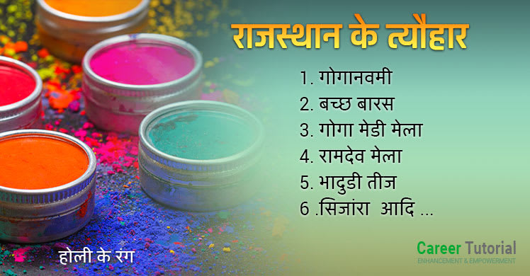 राजस्थान में वर्ष भर हर दिन कोई ना कोई त्यौहार आता है। त्यौहार राजस्थान की संस्कृति की एक अलग पहचान है। जो राजस्थान को दूसरे राज्यों से अलग बनता है, आईये जानते है राजरथान में कौन कौन से त्यौंहार प्रमुखता से मनाये जाते है ।
