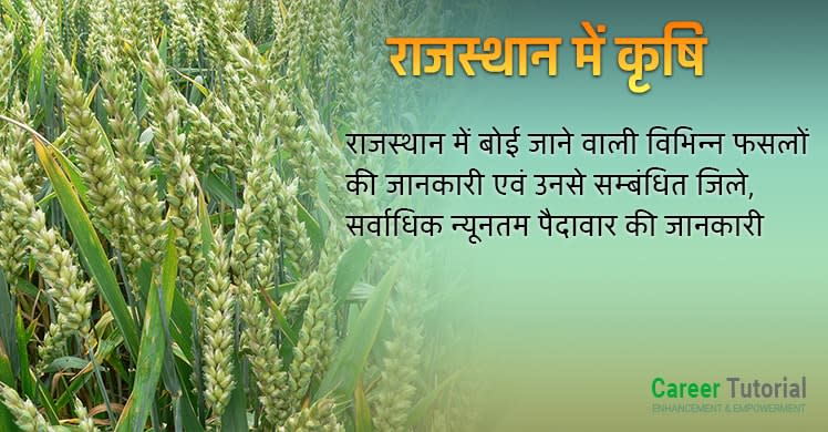 जौ | सर्वाधिक उत्पादन वाला जिला -> गंगानगर सर्वाधिक बुवाई का क्षेत्रफल :- गंगानगर भारत में राजस्थान का दूसरा स्थान देश के कुल उत्पादन का 29% उत्पादन राजस्थान में होता है। |